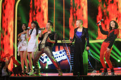 而哈林老師則依舊施展自己的改編功力,將一首《熱情的沙漠》改編成了四個(gè)截然不同的版本。大山的搖滾、王韻壹的爵士、金池的流行與吳莫愁的邪氣在同一首歌里被詮釋的淋漓盡致。臺(tái)上五位師生賣力演唱,臺(tái)下觀眾也不閑著,手握紅綢隨著音樂(lè)律動(dòng)歡呼,現(xiàn)場(chǎng)瞬間化身紅色海洋。